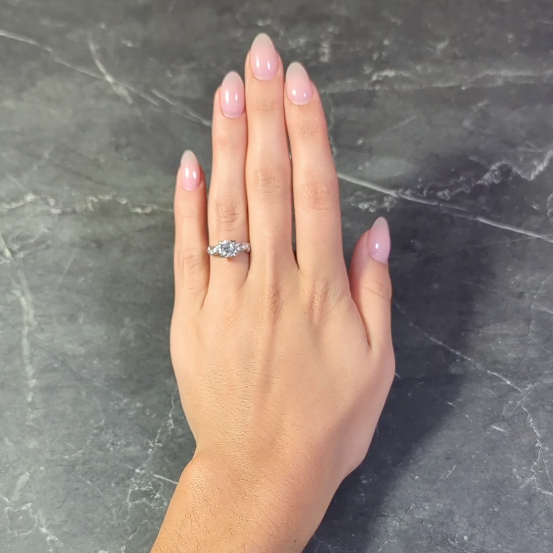 Mid-Century 1.11 CTW Diamond Platinum Scrolling Ribbon Vintage Engagement Ring