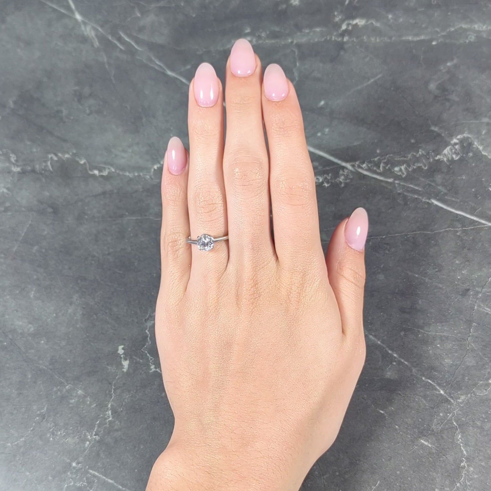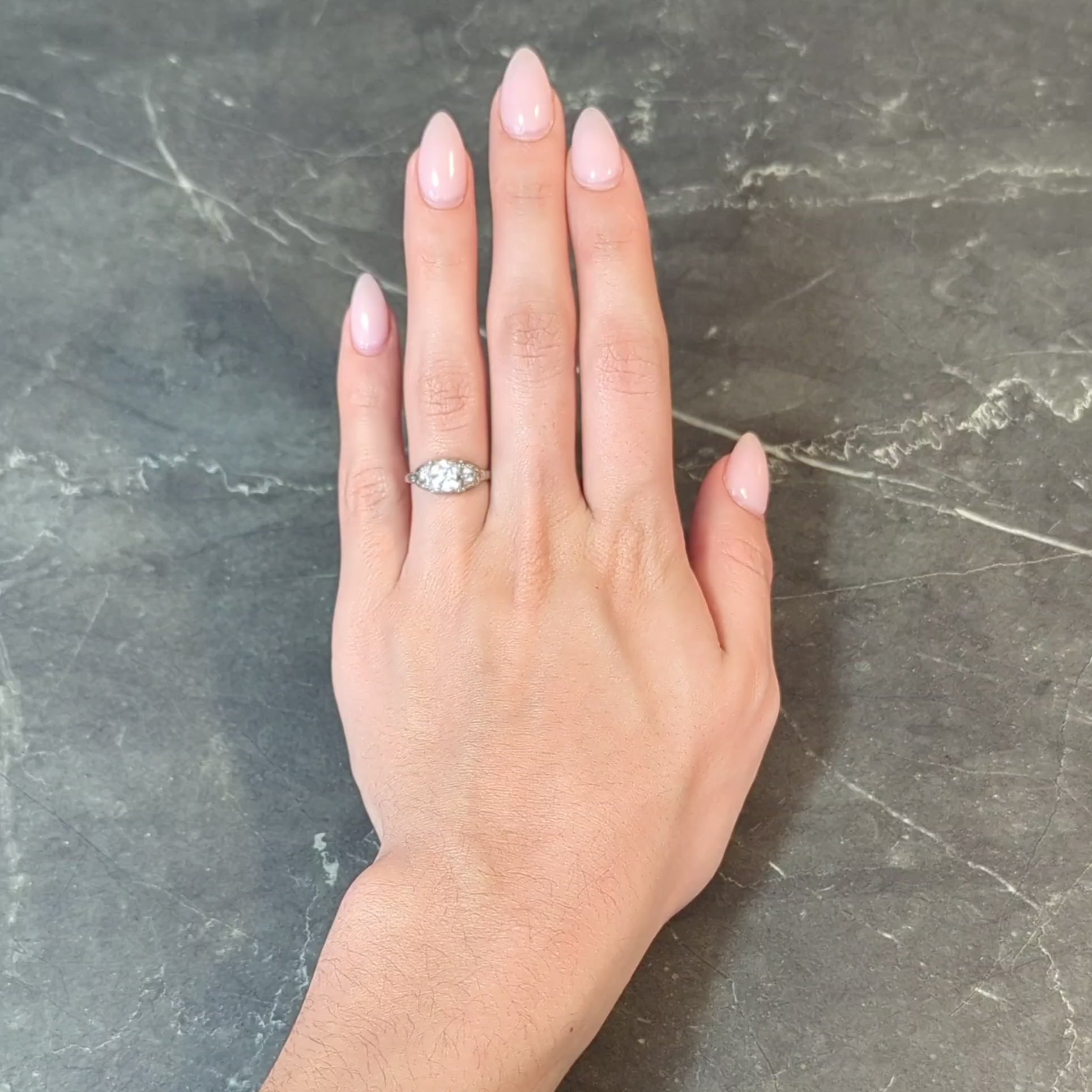 Late Art Deco 0.70 CTW European Cut Diamond 18 Karat White Gold Vintage Lotus Engagement Ring