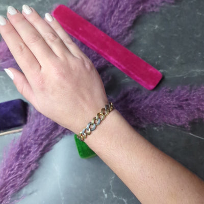 - Bracelet is designed as a curb link chain with segments of matte blackened steel