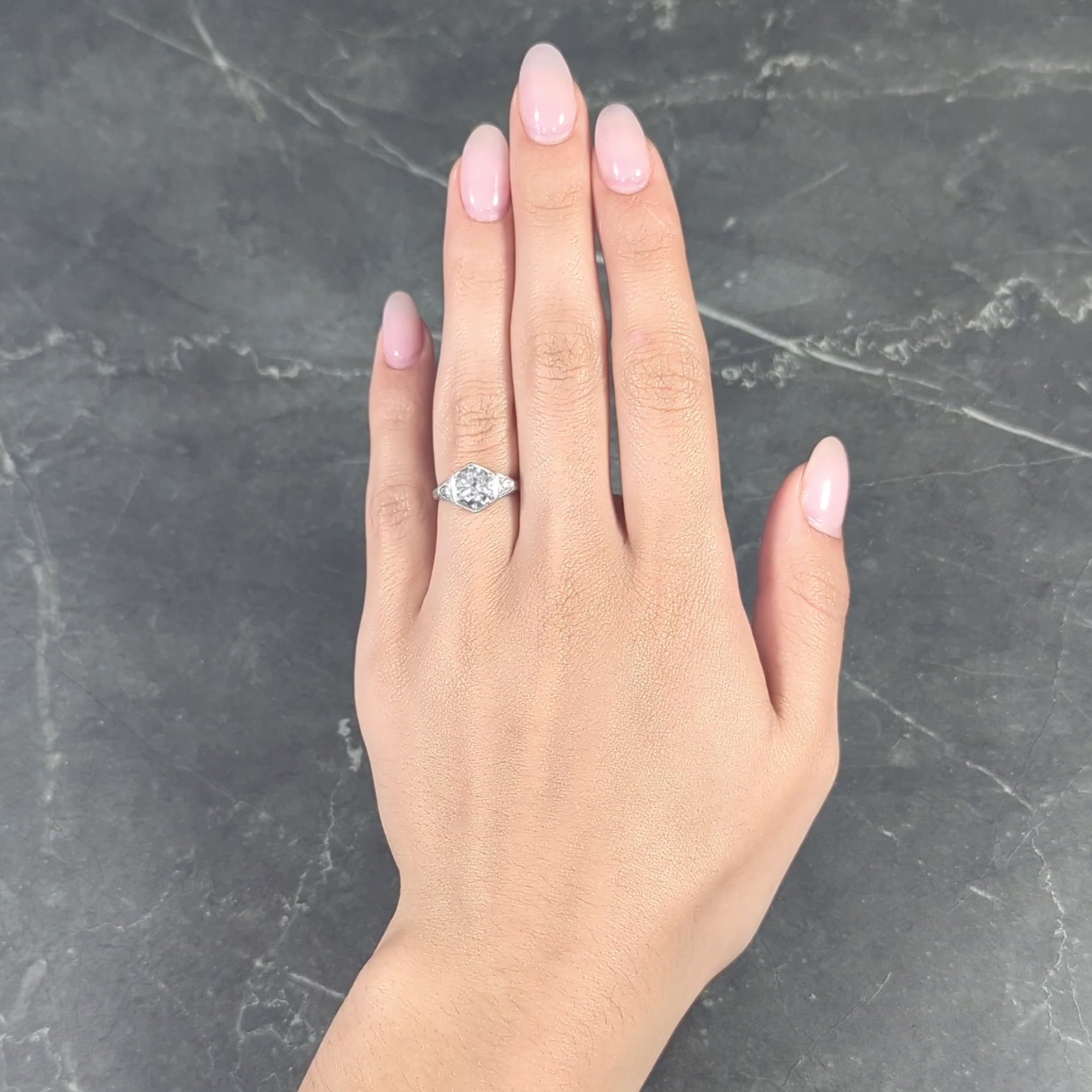 Art Deco 1.60 CTW Old European Cut Diamond 14 Karat White Gold Wheat Hexagonal Engagement Ring