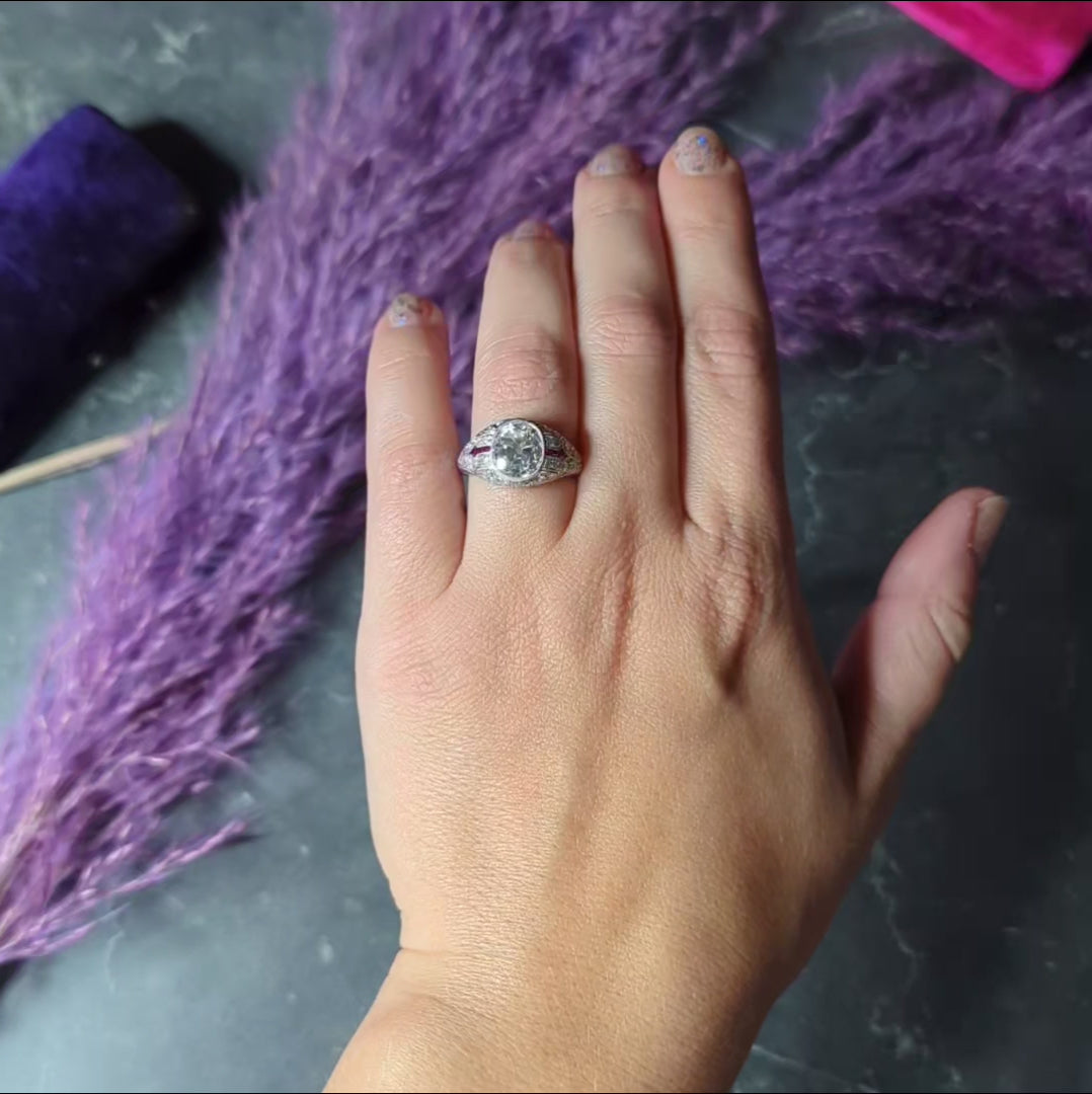 Art Deco 3.16 CTW Old Mine Cut Diamond Ruby Arrow Platinum Bombay Engagement Ring GIA