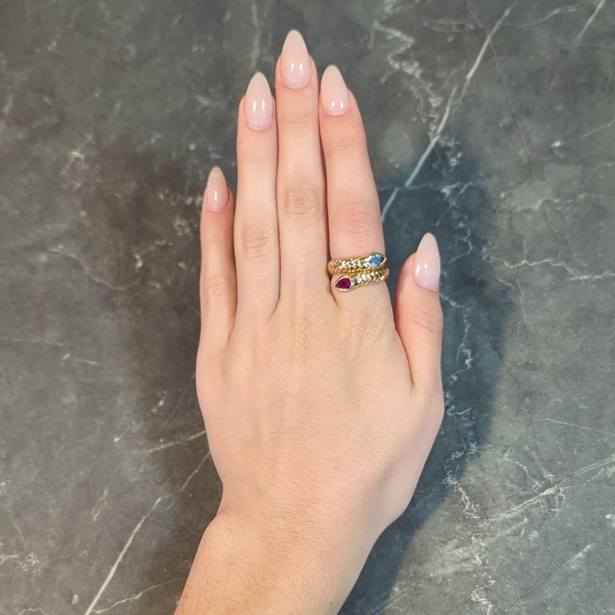 Bulgari Vintage Ruby Topaz 18 Karat Yellow Gold Spiga Tubogas Bypass Ring