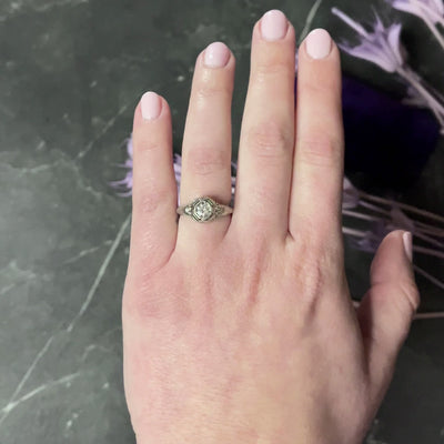 1920's Art Deco Diamond 18 Karat White Gold Heart Engagement Ring