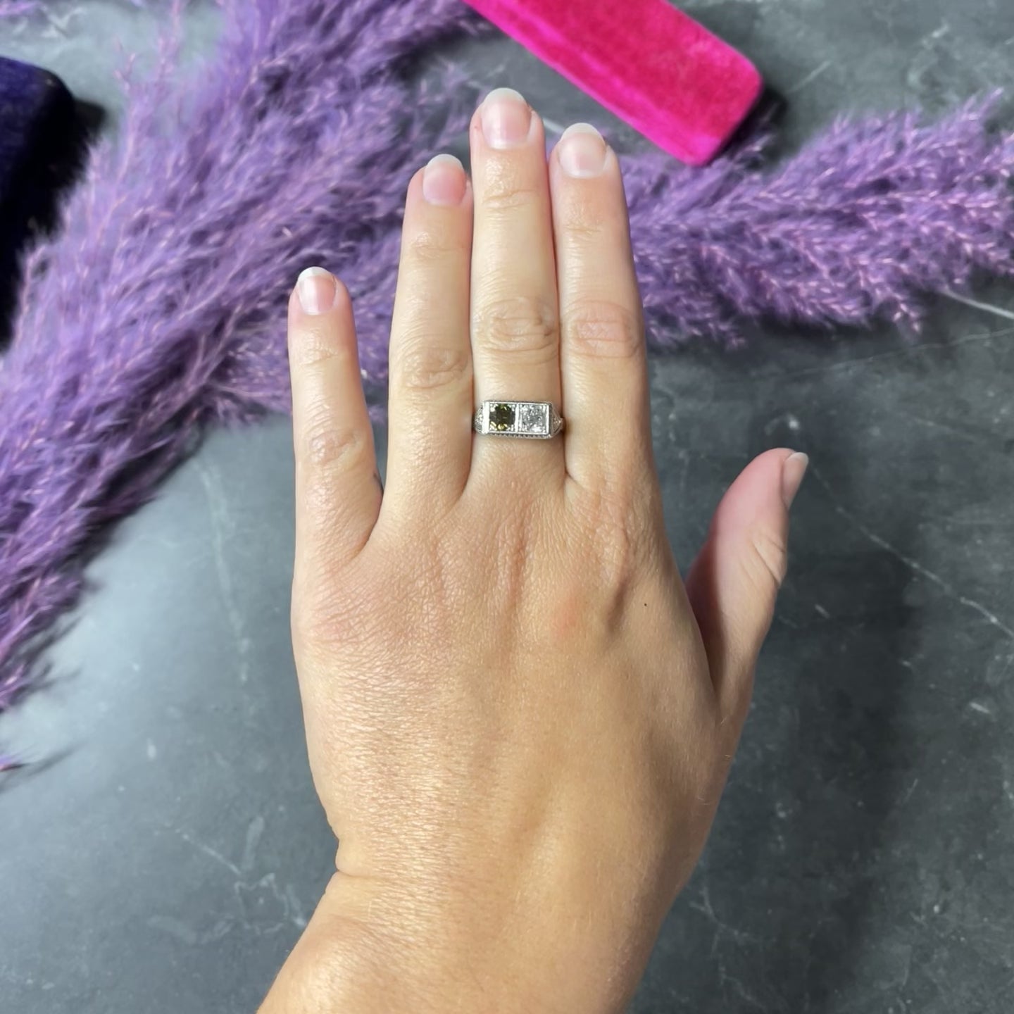 Art Deco 1.00 CTW Fancy Colored Diamond & Diamond Platinum Toi Et Moi Engagement Ring