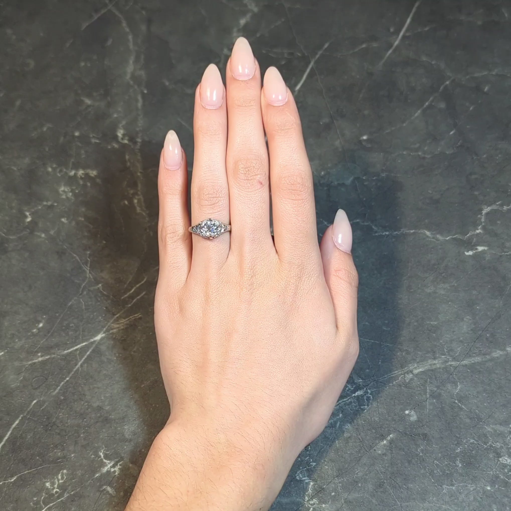 Art Deco 1.01 CTW European Diamond 18 Karat White Gold Antique Engagement Ring