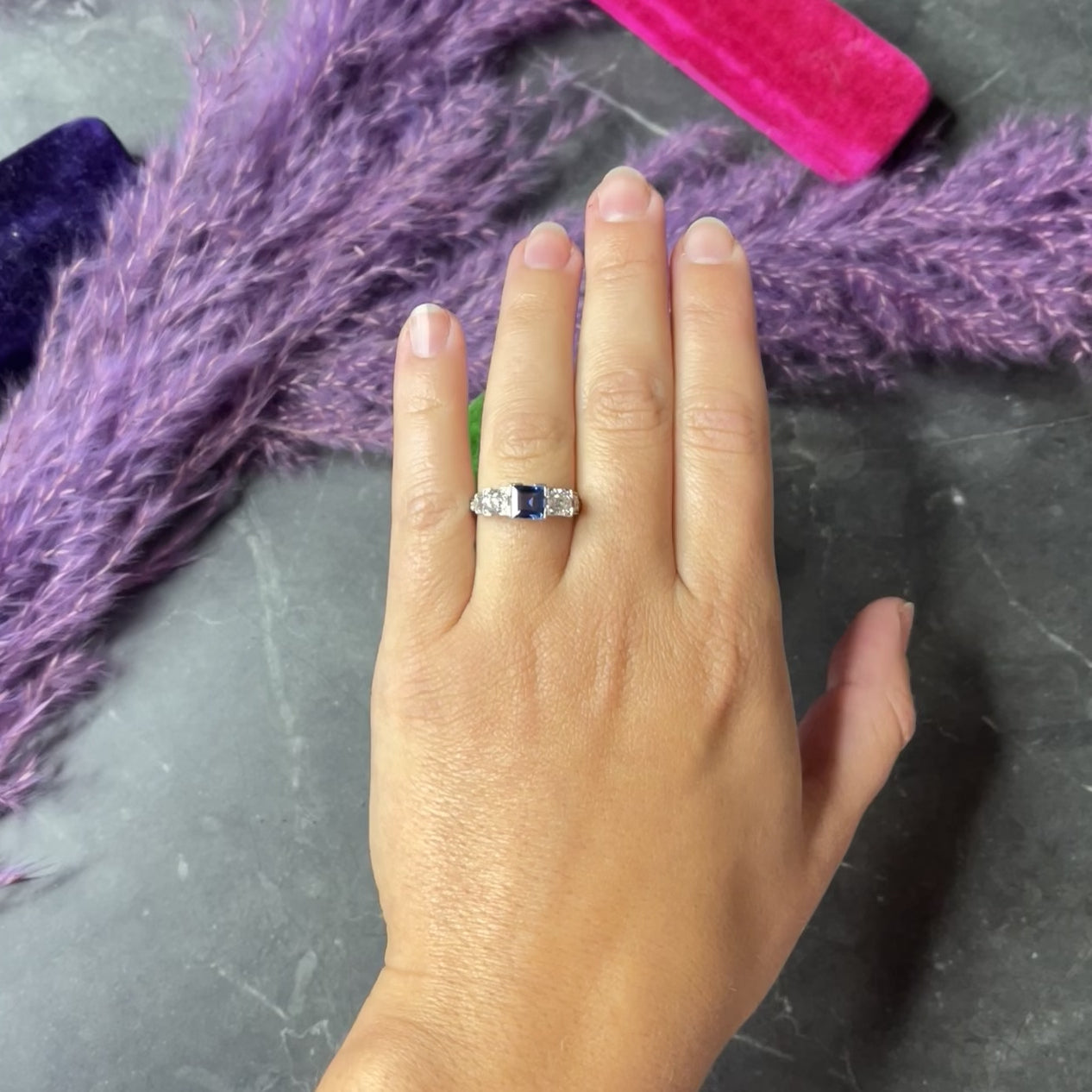 - Centering a square step cut sapphire weighing approximately 1.00 carat