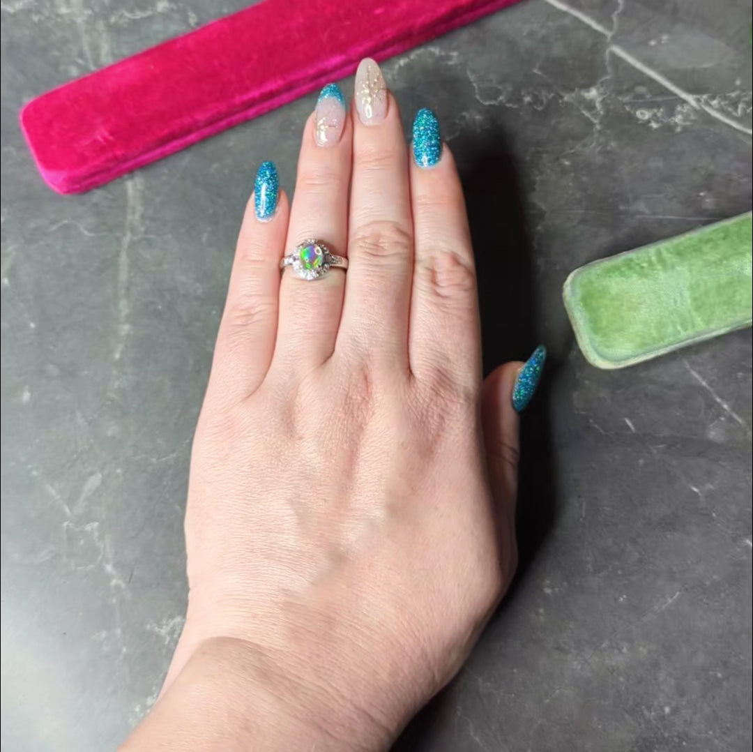Contemporary Diamond Jelly Opal Platinum Halo Gemstone Ring