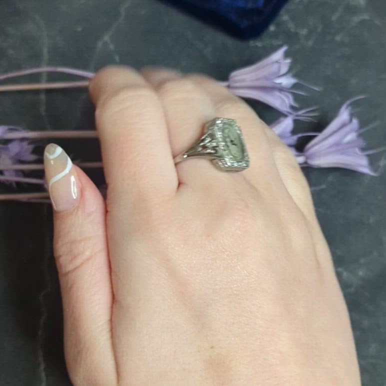 - Watch ring is emerald cut in shape with an oval face with black antique numbering