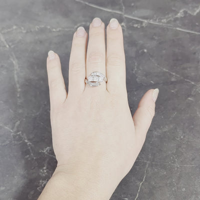 Mid-Century 2.03 CTW Baguette Diamond Platinum Swirling Vintage Bypass Dinner Ring