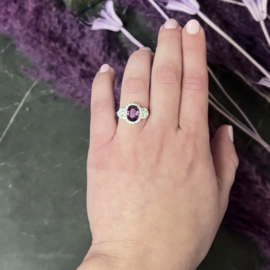 Orianne 3.10 CTW Pink Sapphire Diamond Platinum Triple Halo Ring