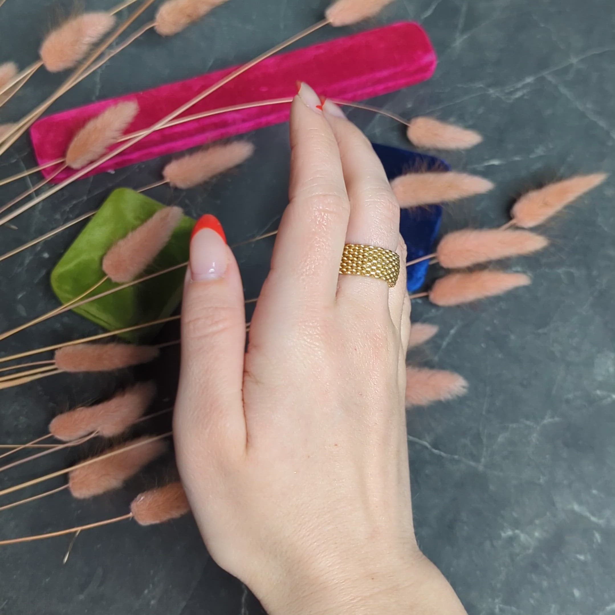 - Ring is designed as flexible woven mesh fully around