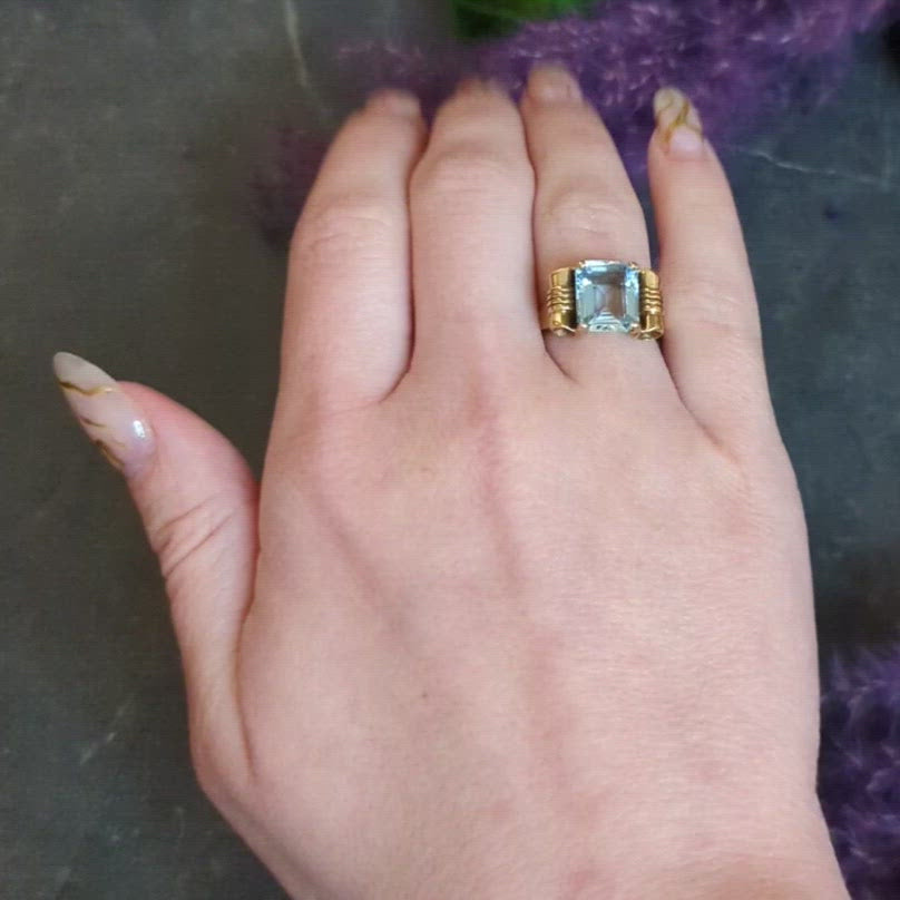 Tiffany & Co. Retro 3.70 CTW Aquamarine 14 Karat Yellow Gold Ring